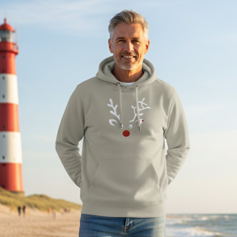 Die Tage werden kürzer, die Nächte kälter. Rudi, unser rotnasiges Rentier, bringt im Herbst und Winter Farbe und Wärme ins graue Einerlei. Mit dem warmen Rudi-Hoodie bist Du nicht nur gut angezogen, sondern zeigst Deine Verbundenheit zu Sylt, der Insel mit endlosen Dünen und frischer Nordseeluft. Mit diesem Hoodie bist Du als Nordlicht sprichwörtlich „eingeweiht“. Manche werden „Sylt“ erst auf den zweiten Blick erkennen. Es ist und bleibt eben etwas Besonderes.