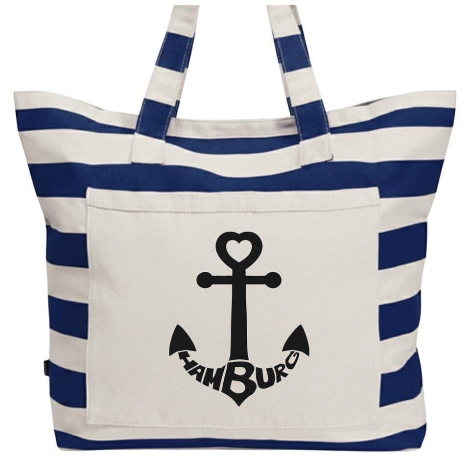Große Strandtasche mit 2meere-Print „Anker Hamburg“