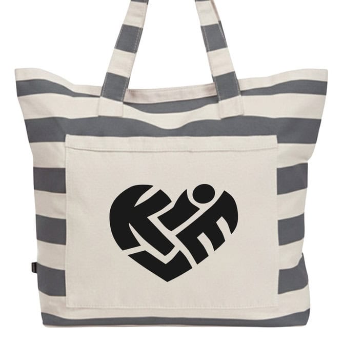 Große Strandtasche mit 2meere-Print „Kiel-Herz“